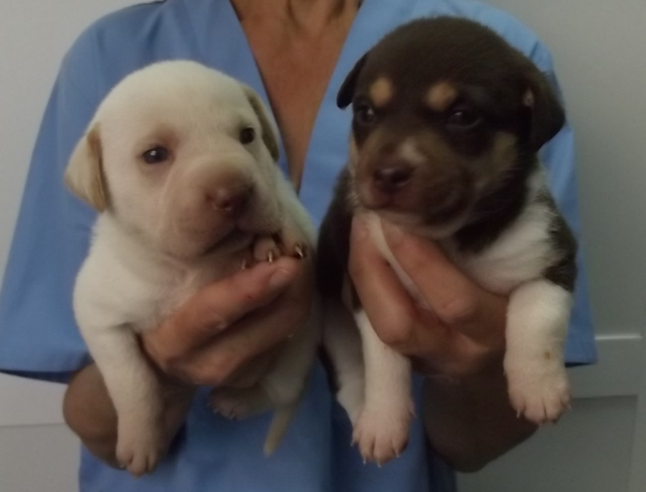 Después de 3 semanas los cachorritos van creciendo. Están preciosos. Hay 3 niñas y 4 chicos. Ya caminan y necesitan correr, y la jaula de un veterinario se hace pequeña para una familia tan grande. Seguimos buscando otro lugar para ellos.