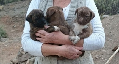 Gloria lleva años luchando para poder intentar esterilizar a una perra que lleva todo su vida como guardiana de cabras. Su vida es vivir amarrada y tener camada tras camada. Muchos de estas criaturas no sobrevivieron. Ahora por fin podremos castrar a la mami y ya tuvimos que retirar los primeros cachorros con solo 4 semanas de edad! Es un grupo de 9 en total. A los mas pequeños los hemos dejado todavía con la mami para que ella pueda sacarlos adelante!