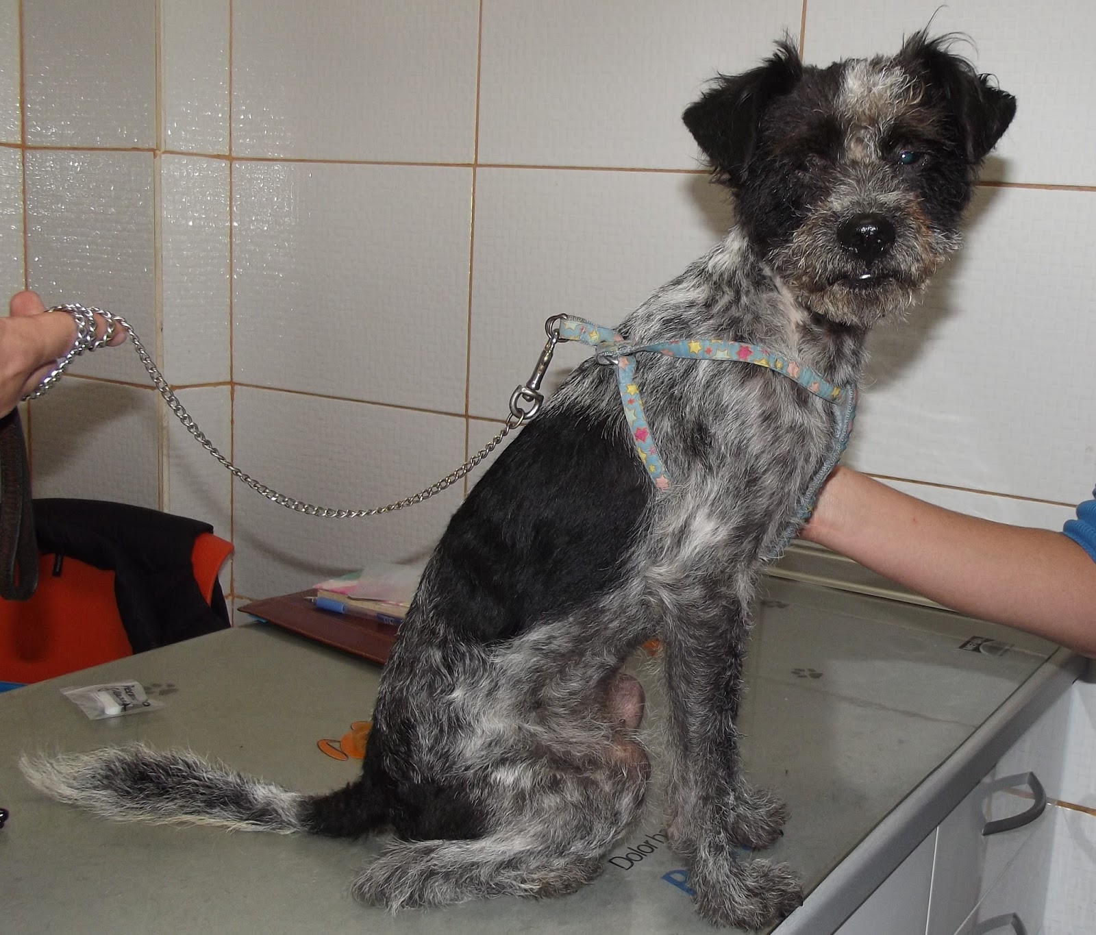 Paula le ha cortado el pelo y ha quedado muy guapo. También ha pasado por el veterinario y aparte de una pequeña infección de oidos que ya estamos curando, está muy sanito.