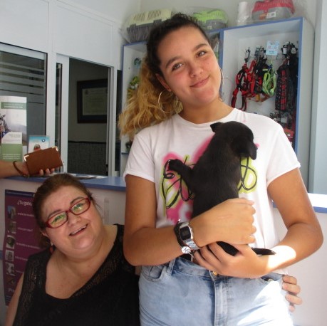 Hoy le tocó el turno a ella y tuvo la suerte de ser elegida por Dulce y sus hijas para formar parte de la familia. Le han puesto de nombre LIA y ya tiene su primera vacuna y microchip.