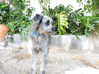 Tiene un tamaño pequeño-mediano, 7,4 kg. Es de color gris y una mirada muy viva e inteligente.