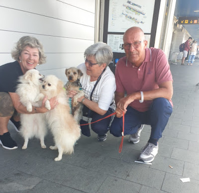 He is very sweet, still very playful, but he was not socialized with other dogs, so he was a bit scared at first. He was very pounced on the food, but little by little he is calming down. The walks on the leash are getting better, although he still pulls a lot.
